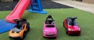The toys we provide are most appropriate for children between the ages of three and five, but our Dinky Drivers (0 to 2 years) and Wheel Whizzes (5 years plus) will find plenty to keep them busy too.